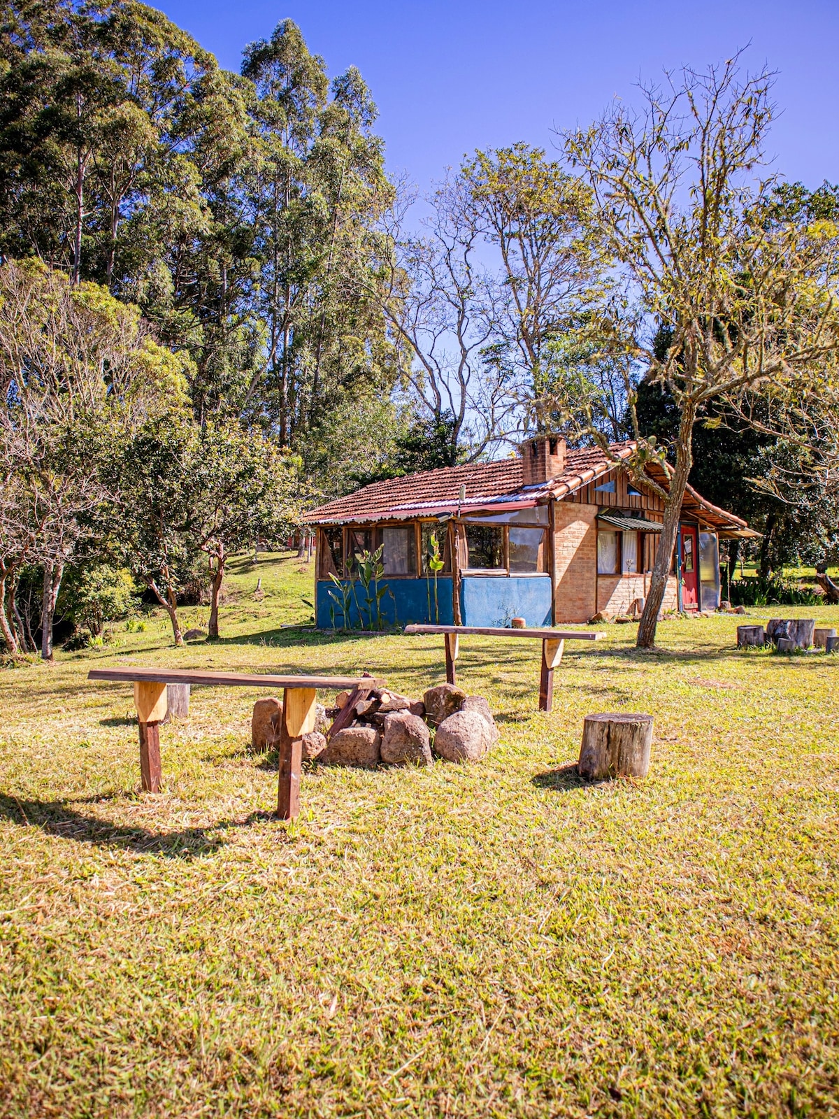 A casa azul contém dois quartos , cada um com uma cama de casal, também tem cozinha equipada ,sala , banheiro , uma varanda com churrasqueira ,uma hidromassagem aquecida e toda fechada de vidro ! A vista é linda para o amanhecer e por do sol. O sitio é muito tranquilo e ideal para quem quer descansar em meio a natureza