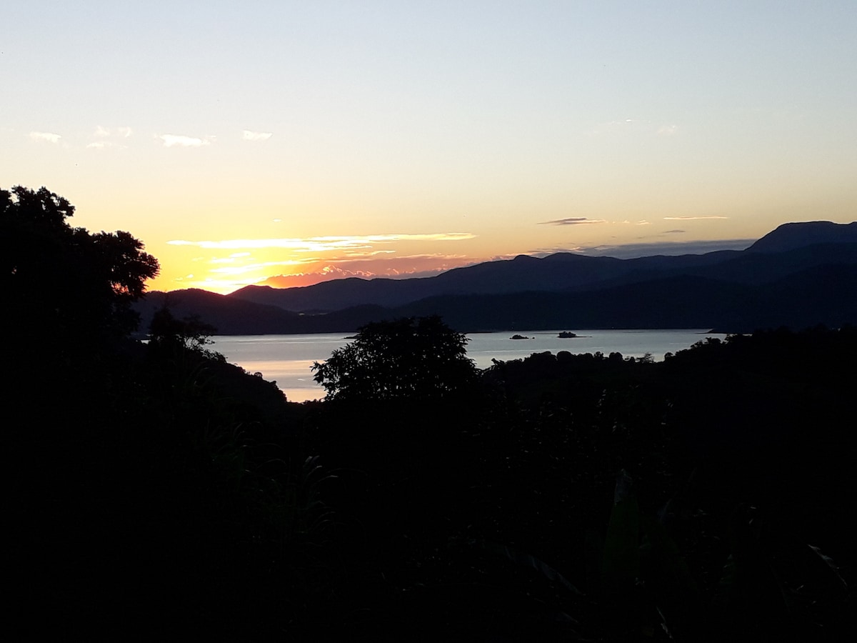 Entre Ubatuba e Paraty, no alto de uma Península que da acesso a Praia da Almada, vista Panorâmica de diversas Ilhas e praias com direito ao mais lindo Por do Sol de Ubatuba. Perfeito para casais em Lua de Mel, observação de pássaros, eco turismo, esportes náuticos. Tranquilidade e beleza em um Chalé de extremo bom gosto. Viva essa experiência única de estar ao mesmo tempo curtindo a serra e a praia num só lugar
