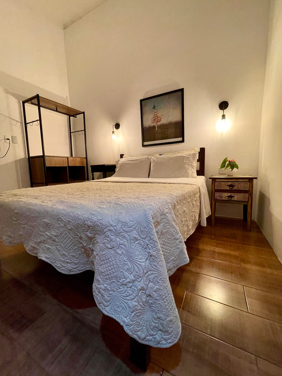 Em pleno centro histórico, esta suíte com banheiro privativo é uma acomodação perfeita para viajantes descomplicados que valorizam simplicidade com conforto. Desfrute de uma localização única, ideal para relaxar ou curtir a pé tudo o que Paraty oferece como restaurantes, lojas e fácil acesso à rodoviária e ao cais, de onde saem a maioria dos passeios. Cheia de afeto, a vila é segura e conta com + 3 suítes, quintal arborizado e cozinha compartilhada como opção para economizar em alguma refeição.