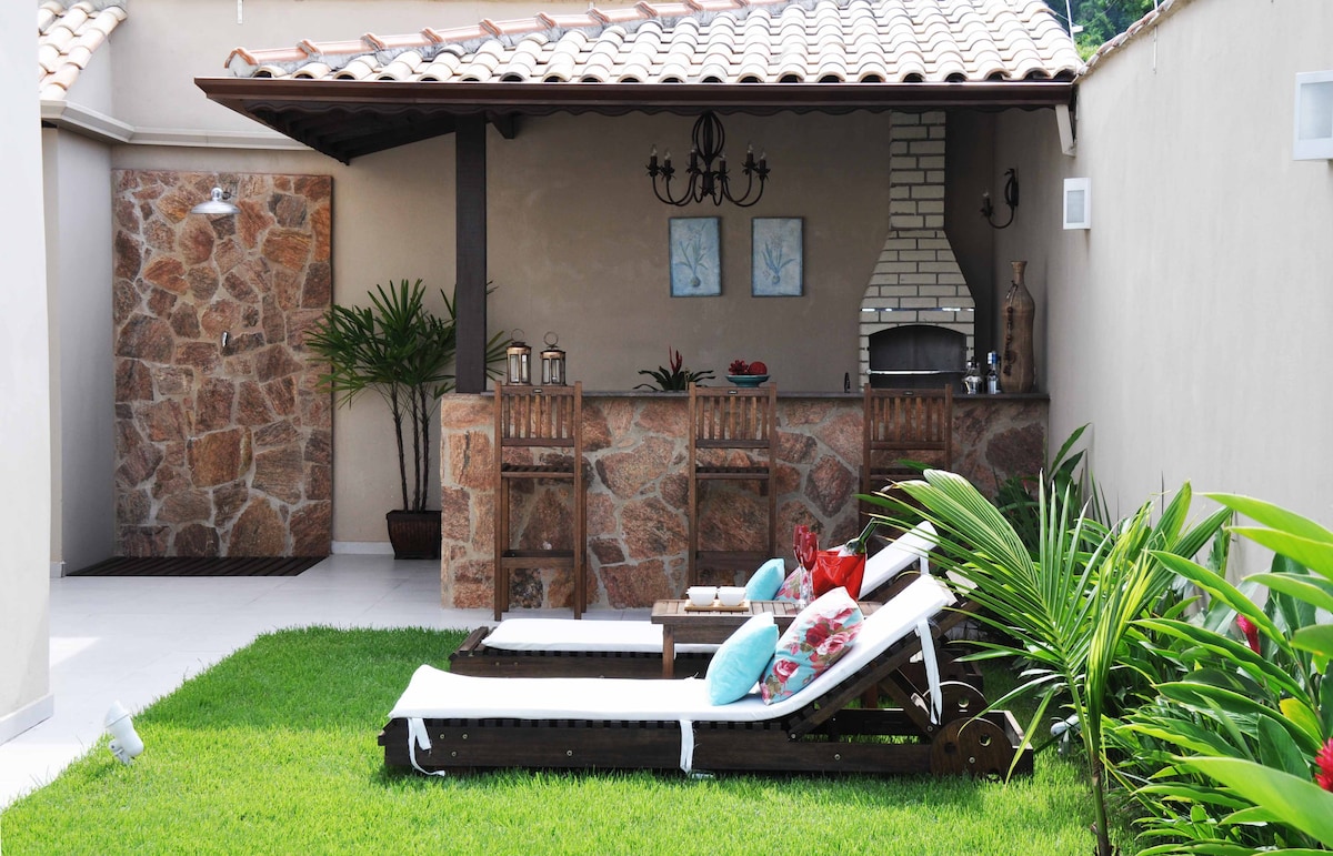 Enjoy a fantastic experience in the best location in Paraty. We are just steps away from the city's best restaurants and attractions. Our house has been entirely renovated and has a spacious living room, dining room, winter garden, full kitchen, 3 suites, office with a double bed, split air conditioning in all bedrooms, toilet, laundry area with washing machine and the ease of being able to park your car outside your house and do everything on foot around the city.