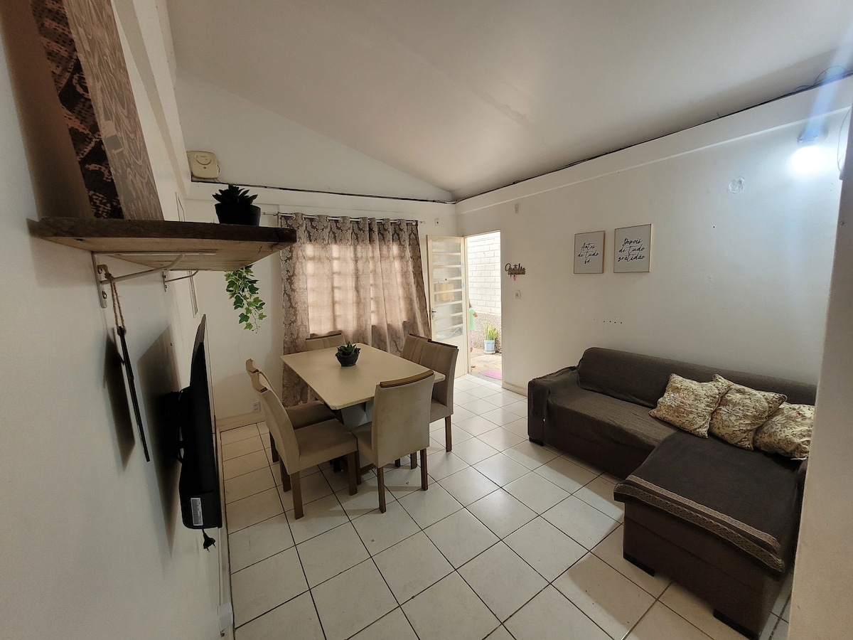 Casa moderna, decorada, com piscina refrescante e com todos os utensílios necessários para uma ótima hospedagem. Com 2 quartos, 2 banheiros, Espaço Gourmet , descanso e espaço de trabalho. Ideal para lazer ou trabalho, oferece praticidade e estilo em cada ambiente. Perfeito para casais, famílias ou profissionais em viagem. Quartos climatizados, bem decorados e funcionais, pensados para garantir sua melhor experiência. Sinta-se em casa e aproveite cada momento da sua estadia! Estou a disposição!