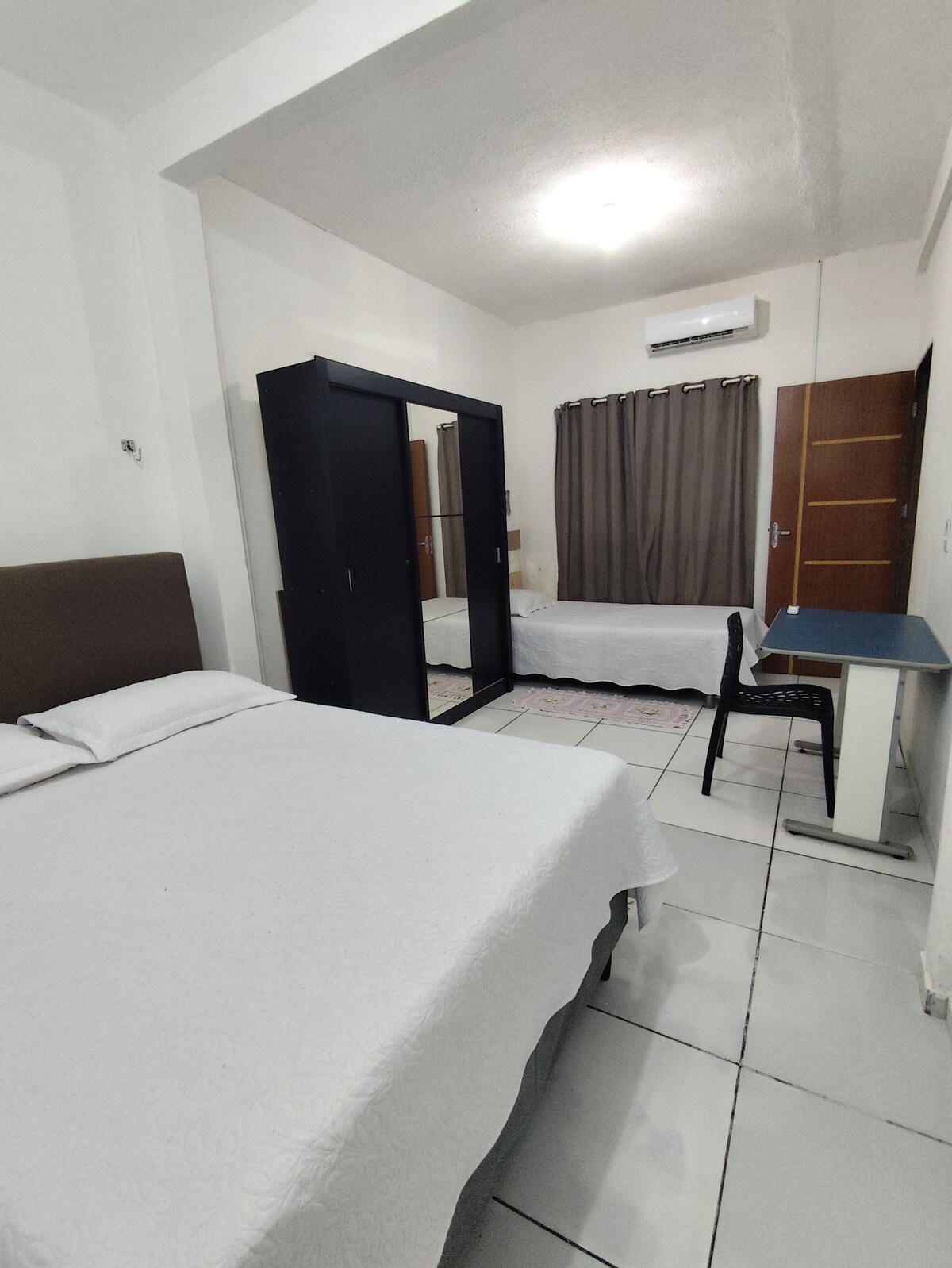 Elegante e espaçosa, o espaço conta com ar condicionado, máquina de lavar e uma localização ótima próximo de supermercados, farmácias, restaurantes e etc... Não é compartilhado, apenas o hóspede fica na residência.