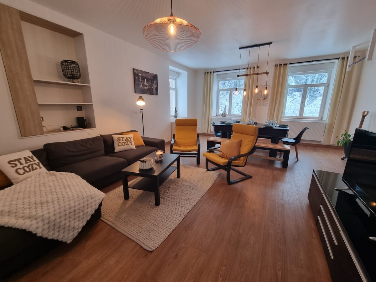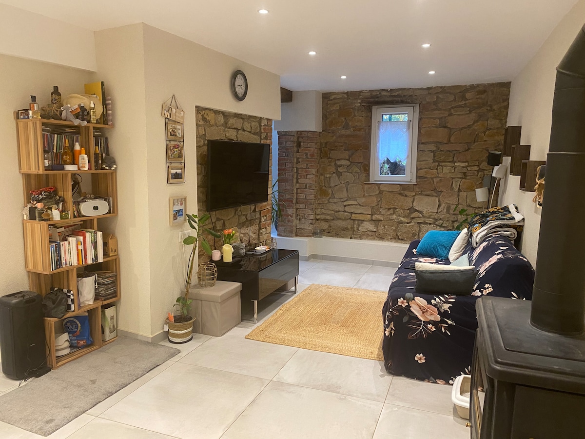 Bienvenue à la tanière du loup, logement 1 Appartement de 50 m2 rénové en 2020, meublé et équipé avec tout le nécessaire pour que votre séjour se passe comme à la maison. Située dans un endroit calme et reposant. L'accès est indépendant avec une terrasse et parking privé (le parking à une vidéo surveillance) Cuisine tout équipée Salon : canapé convertible 140/200, TV orange et Netflix inclus Chambre 1 double lit 180/190 Salle de bain équipée: sèche cheveux, serviettes, ect..