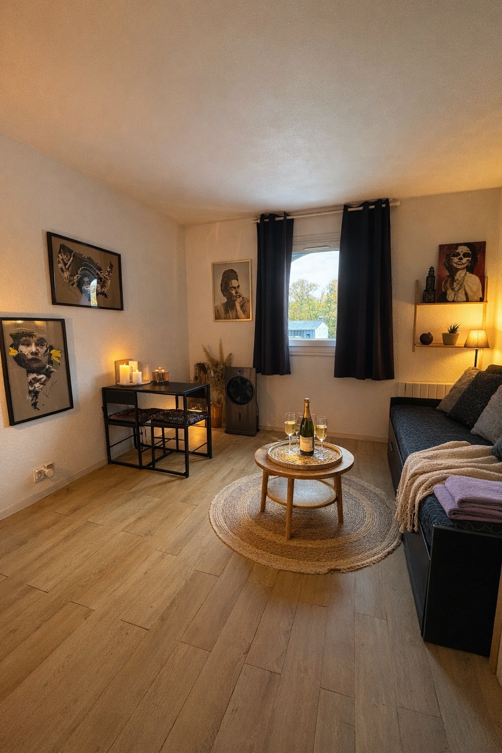 Studio cosy, chaleureux et fonctionnel, décoré d’œuvres originales pour une ambiance unique et apaisante. L’App’ART vous offre une véritable parenthèse artistique au cœur du quartier des maisons de Champagne. À seulement 5 min à pied des caves Pommery, Ruinart, Veuve Clicquot et du restaurant gastronomique Les Crayères ; idéal pour un séjour touristique, romantique ou pro (parc des expositions) Check-in autonome pour une arrivée en toute liberté. PARKING gratuit au pied de la résidence.