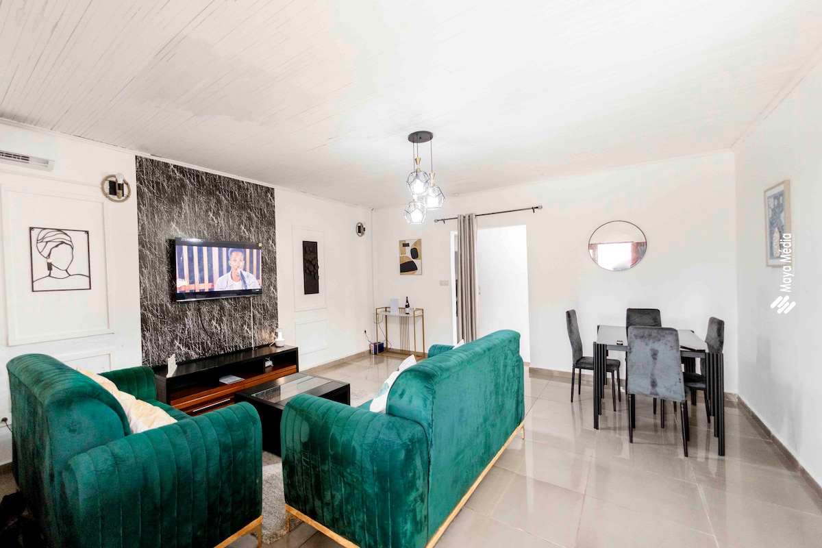 Détendez-vous dans ce doux logement où nous accordons une attention particulière à la propreté +++ et à la sécurité. Situé au sein de la Résidence Gigi home, il dispose d’eau chaude, climatisateur dans chaque pièce, Château d’eau, wifi, vidéosurveillance, gardiennage. Nous sommes présents sur les réseaux ( Résidence Gigi home) pour plus de photos et infos.