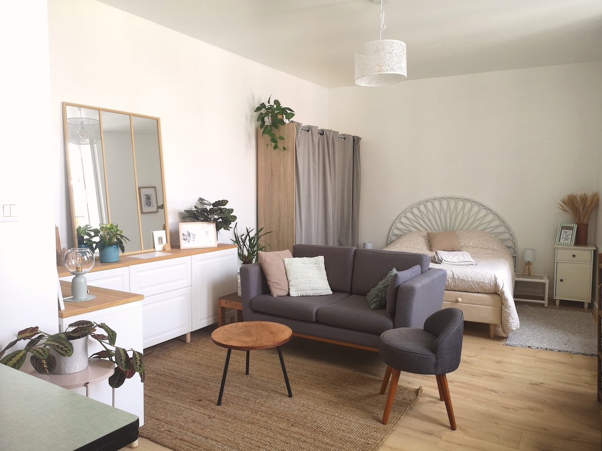 Un studio cosy de 26m2, idéal pour accueillir 1 ou 2 voyageurs, situé dans une rue paisible du quartier Zola / Chantenay. A deux pas du tramway (3 minutes à pied du Tramway 1) et des bus (11/23), son emplacement est idéal pour visiter la ville de Nantes : - 15 min des machines de l'île ; de la Place Royale. - 10 min du Jardin Extraordinaire ; des navettes fluviales pour rejoindre Trentemoult