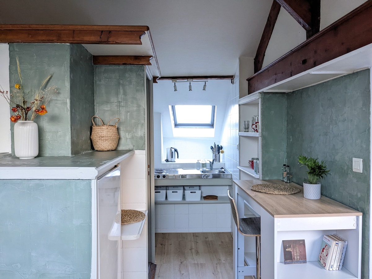 La cachette sous les toits, dans le quartier Canclaux rue Vauquelin, est le refuge idéal pour les couples. Mini studio privée Climatisé, mansardée, avec balnéo 2 places, face à la TV, et cuisine équipée. Les petits + : La place de parking séurisée, et les vélos mis à dispositions. La proximité des transports, commerces, à 2 minutes à pied et le centre ville, l'éléphant, sont à moins de 5 minutes en voiture. La cachette sera l'endroit idéal pour ce ressourcer dans notre belle ville.