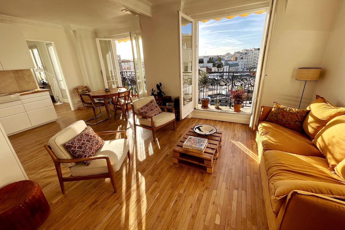 New apartment totally renewed by an architect, a lot of light, under the roof with the top of the Eiffel Tower view! In the heart of Batignolles and Montmartre district, at 10min walking distance from the Sacré Cœur, at 10min walking distance from Moulin Rouge and the very dynamic district Pigalle, at 20min walking distance from Madeleine/ Concorde... On the 5th floor without elevator but a great space, light and view when you re in the apartment! It worths it!