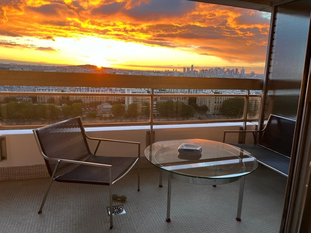 Très beau studio de 35m2 refait à neuf avec des matériaux haut-de-gamme disponible à la location pour de courts séjours ( minimum 3 nuits )Le bien se compose d’une entrée avec de grands rangements intégrés, d’une salle de bain et wc spacieuse et agréable, d’une pièce de vie salon, d’une cuisine aménagée et ouverte sur l’espace de vie, d’un coin bureau avec un lit escamotable avec literie hôtelière donnant sur une terrasse privative et avec vue à 180° sur la Seine.