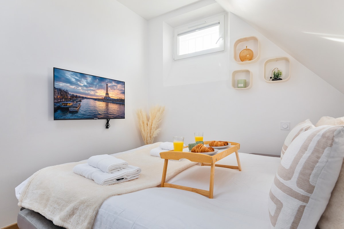 Superbe studio situé au cœur du 16ᵉ arrondissement de Paris, au dernier étage d’un immeuble élégant. Offrant une magnifique vue dégagée sur la capitale, il allie calme, confort et raffinement. Entièrement rénové et décoré avec soin, c’est le lieu idéal pour un séjour romantique ou professionnel. Profitez d’un espace lumineux, d’une literie haut de gamme et d’un emplacement privilégié à proximité de la Tour Eiffel et des plus beaux quartiers parisiens.