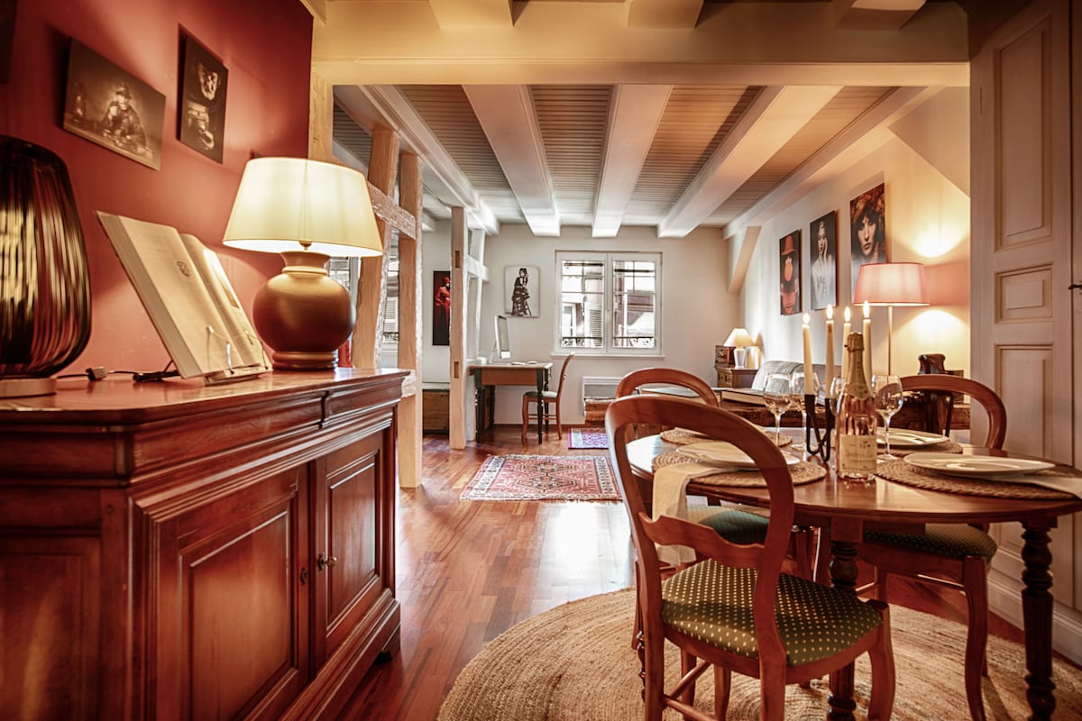 In the heart of Colmar, the jewel of Alsace, our Saint Matthieu gîte welcomes you on the first floor of a 14th-15th century house. It is the ideal location to discover the city and its heritage, for a weekend or more. Access to Netflix, Google TV, Amazon Prime… Sheets and towels provided. /// FREE, COVERED, SURVEILLANCED PARKING 50 METERS AWAY /// Welcome to our home.