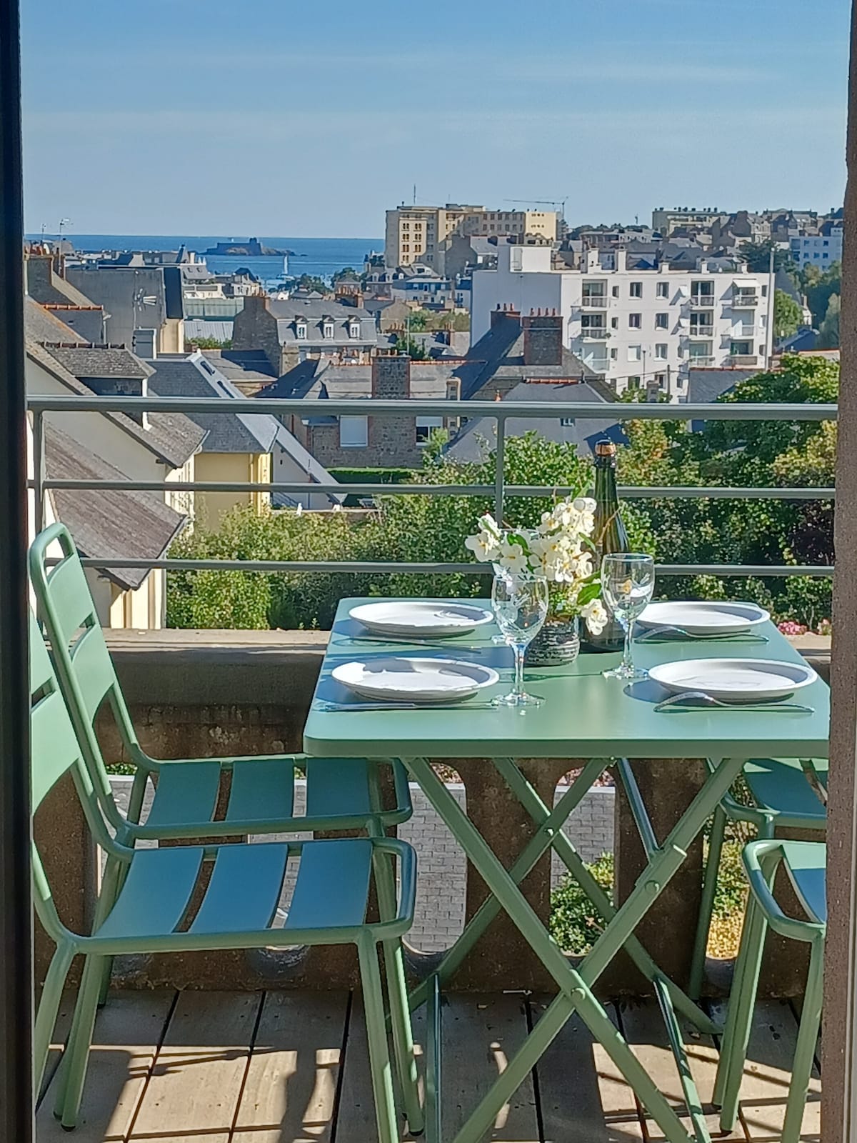 Duplex avec vue magnifique sur la mer, le port des Bas-Sablons et Dinard, 1er rang pour le coucher du soleil sur le cap Frehel ! D'une superficie de 45 m2, composé d'une pièce de vie et d'une chambre à l'étage. A proximité de la plage des Bas-Sablons, des commerces, restaurants et marché. Il suffit de 10 à 15 minutes de marche pour rejoindre l'intra-muros et ses remparts . De superbes balades aux alentours comme la Tour Solidor, la cité d'Aleth avec la vue sur Dinard, le port des Bas-Sablons.