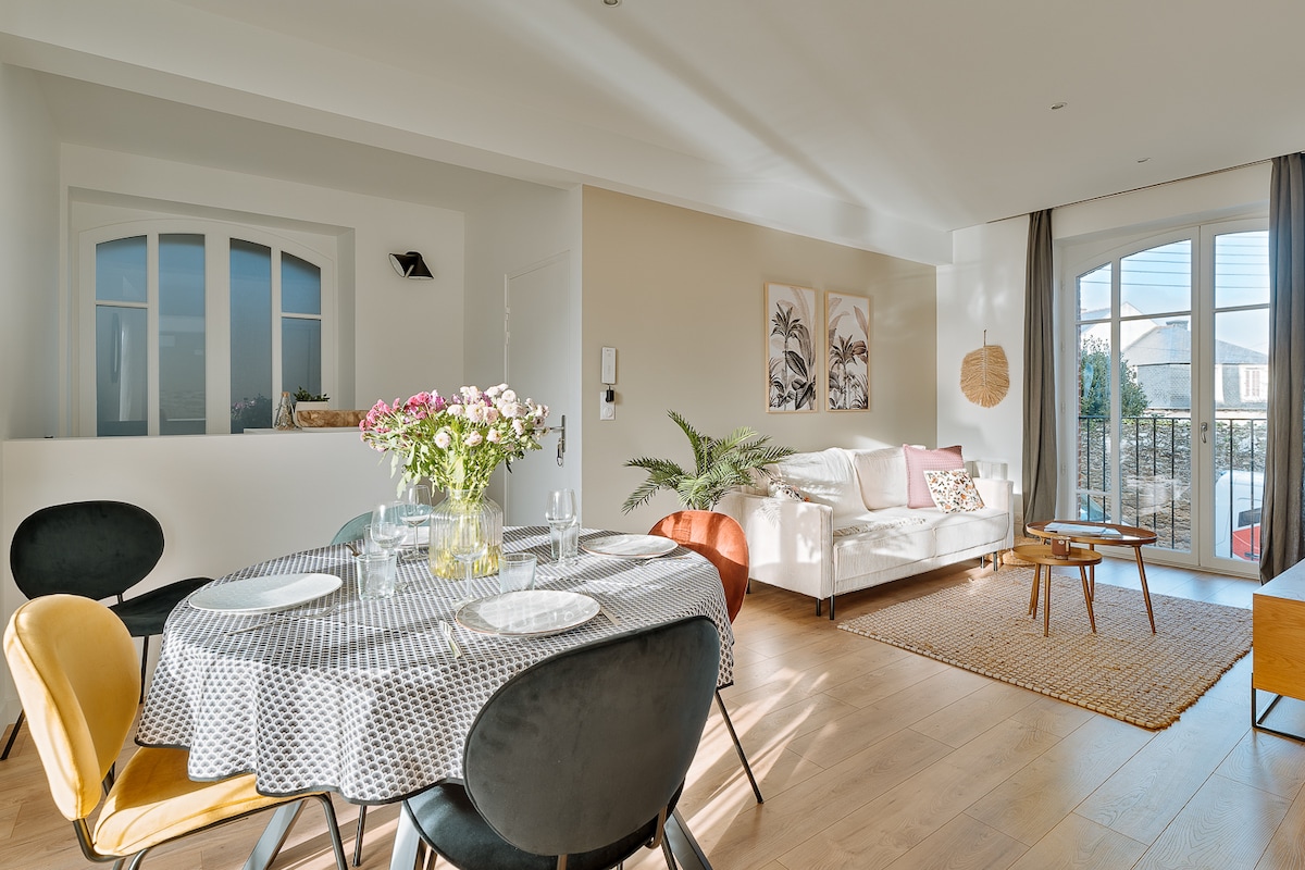 Book now for the perfect vacation! Completely remodeled, well-insulated thermally and acoustically, with high-end appliances. 4 Bed and 3.5 Baths (w/bathtub) - 5 beds (1 King /2 Queen/2 Singles) perfect for 8 guests. Located in the best place, close to the beach and town but in a quiet setting with lovely walks and cycle paths. -Natural Beach: 600m -Dinard: A stone's throw away 5-7 min car, bus or bicycle -St Malo: A short drive 15-20 minutes by car, bus -Mount Saint Michel: 50 minutes’ drive