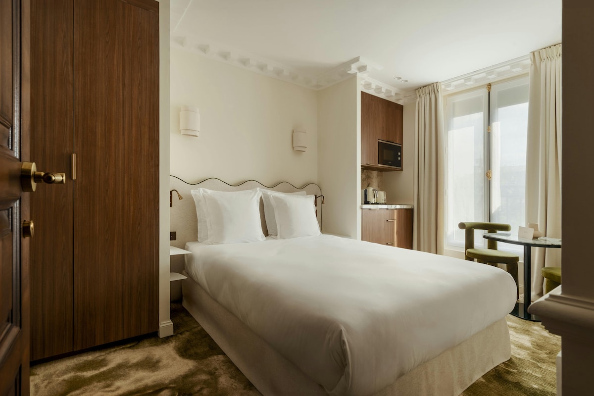 Bienvenue dans votre chambre, pensée pour allier confort, élégance et fonctionnalité au cœur de Paris. Située au sein d’un hôtel design entièrement rénové. La décoration sobre et contemporaine, fidèle à l’univers de l’hôtel, crée une atmosphère apaisante et chaleureuse, parfaite pour un séjour parisien réussi.