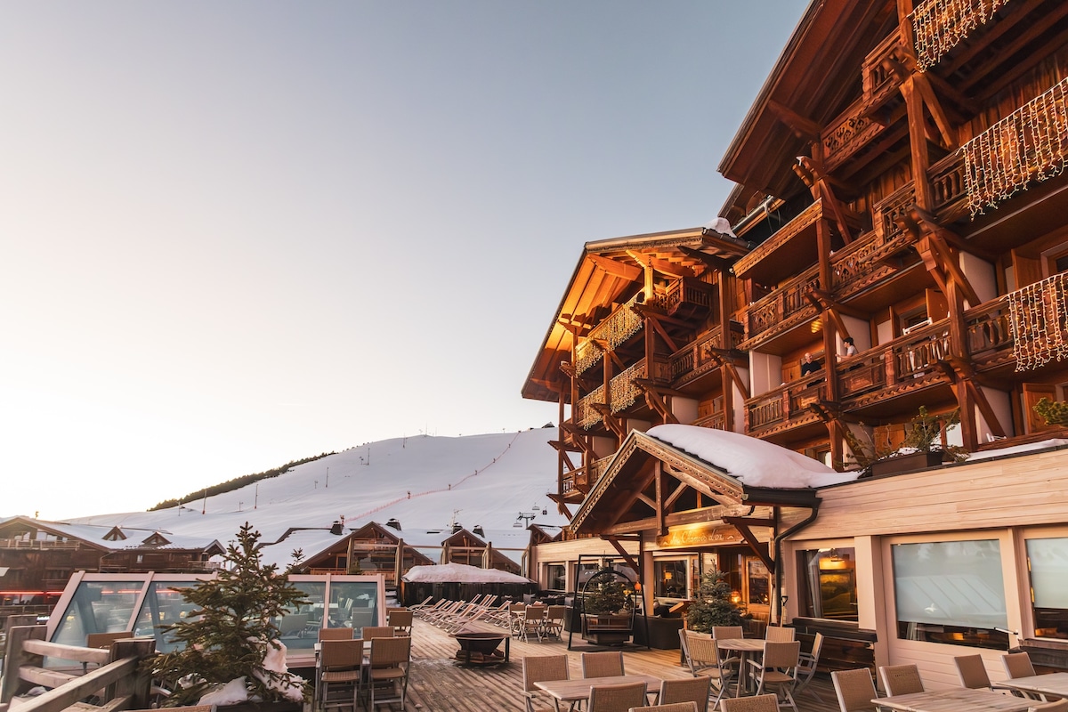 • Located at the foot of the slopes of Meribel- Mottaret • A ski-in ski-out Hotel • Buffet Breakfast included • Lounge with fireplace, generous buffet of pastries offered every afternoon • Spa by Anne Semonin with sauna, hammam, jacuzzi, sensory shower & massage rooms • Individual heated ski lockers • Gourmet Restaurant La Table du Ruitor, Savoyard Restaurant & Argentinean Grill • Covered Carpark available with extra charge