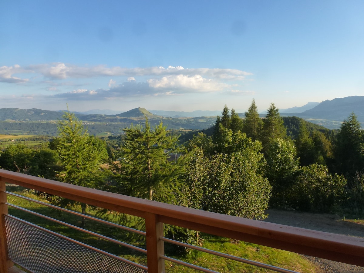 Located on the heights of the village of Réotier at 1100m above sea level. You will appreciate this 116m² wooden chalet for the view and comfort. It is perfect for families (with children). The chalet is in a very calm environment. You will have a breathtaking view of the Durance valley, the Queyras mountains with a thousand hikes, the ski resorts of Vars and Risoul, the Vauban stronghold of Mont-Dauphin (listed as World Heritage by UNESCO) and the village of Guillestre.