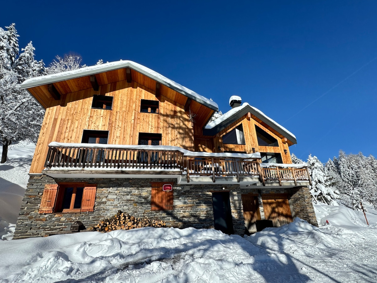 Magnificent luxurious apartment-chalet of 110m2, with terrace. Benefit from 3 spacious bedrooms on the lower level. The apartment is new and is ideally located at the end of the “Le Laisinant” slope. It is 200m from the bus stop, 5 minutes walk from all the shops in the center, and access to the ski lifts. The return is done on skis. Parking and a closed box with direct access to the apartment can park two cars.