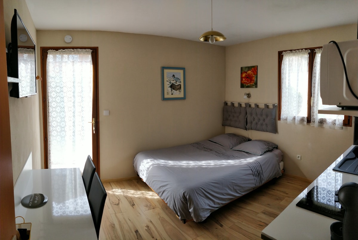 We will host you all year long in a nice, cosy, renovated barn located in a small village in the middle of the Chartreuse Mountain chain. The studio is composed of a bedroom on the first floor with a bathroom (shower) and on the ground floor, a kitchen with a microwave, electric cooking Appliance. Note that the toilets are on the ground floor. Bed sheets and towels provided. Homemade breakfast not included in the price.