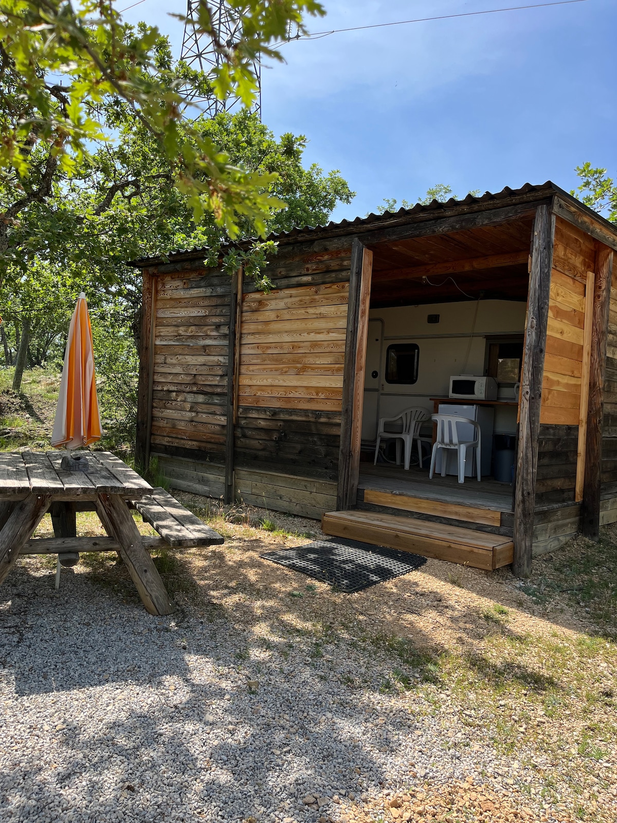 Dans un charmant coin de verdure, logement de plein air avec toutes commodités sur place, salle de bain avec douche, lavabo, WC, machine à laver. Terrasse couverte avec salon et cuisine équipés, barbecue, le tout sur un terrain arboré dont 1200 m2 sont compris dans la location. Tranquillité assurée. Sisteron est une belle ville fortifiée. (citadelle, plan d'eau, parc animalier, randonnées, site d'escalade, poney club, accrobranche, via ferrata et gorges de la Méouge, beaux villages perchés...)