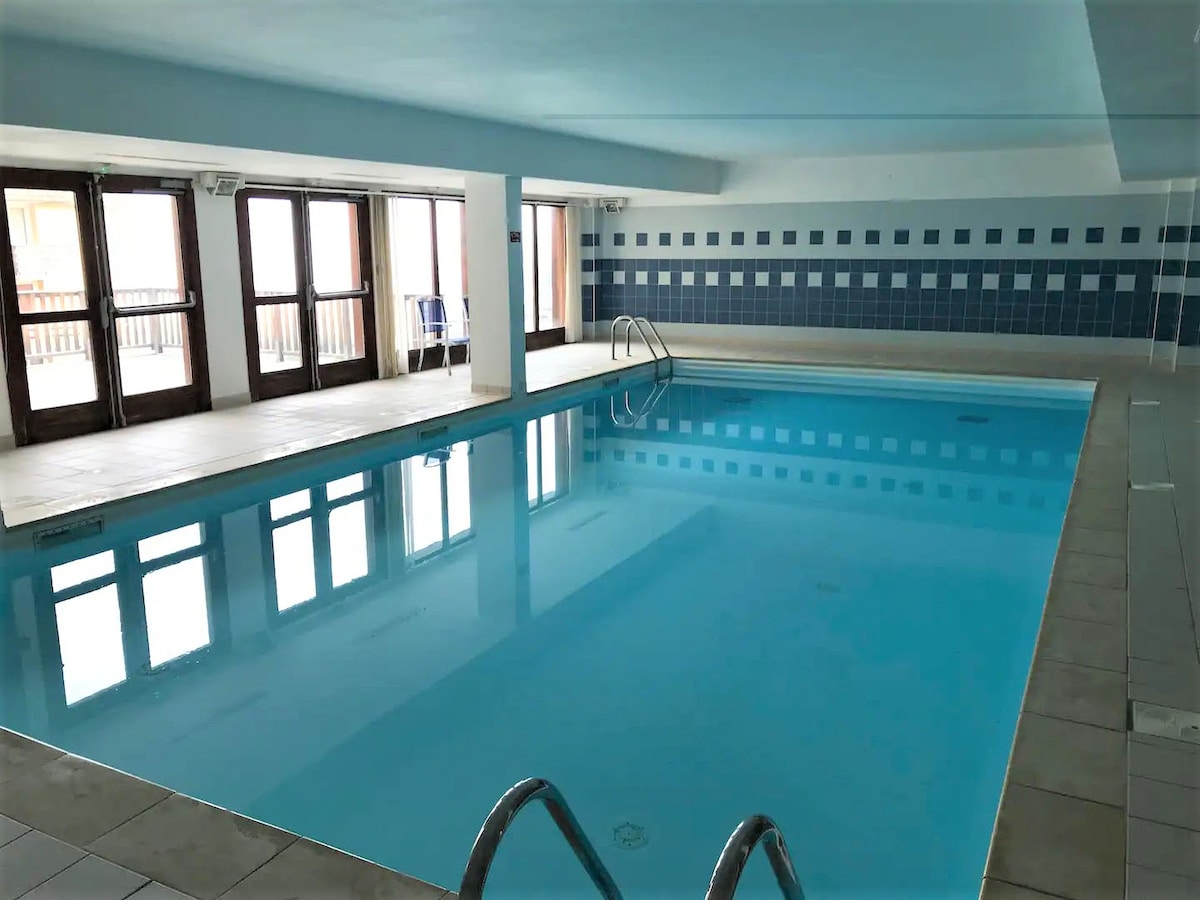 3卧滑雪公寓,带泳池、地下停车场,可住8人