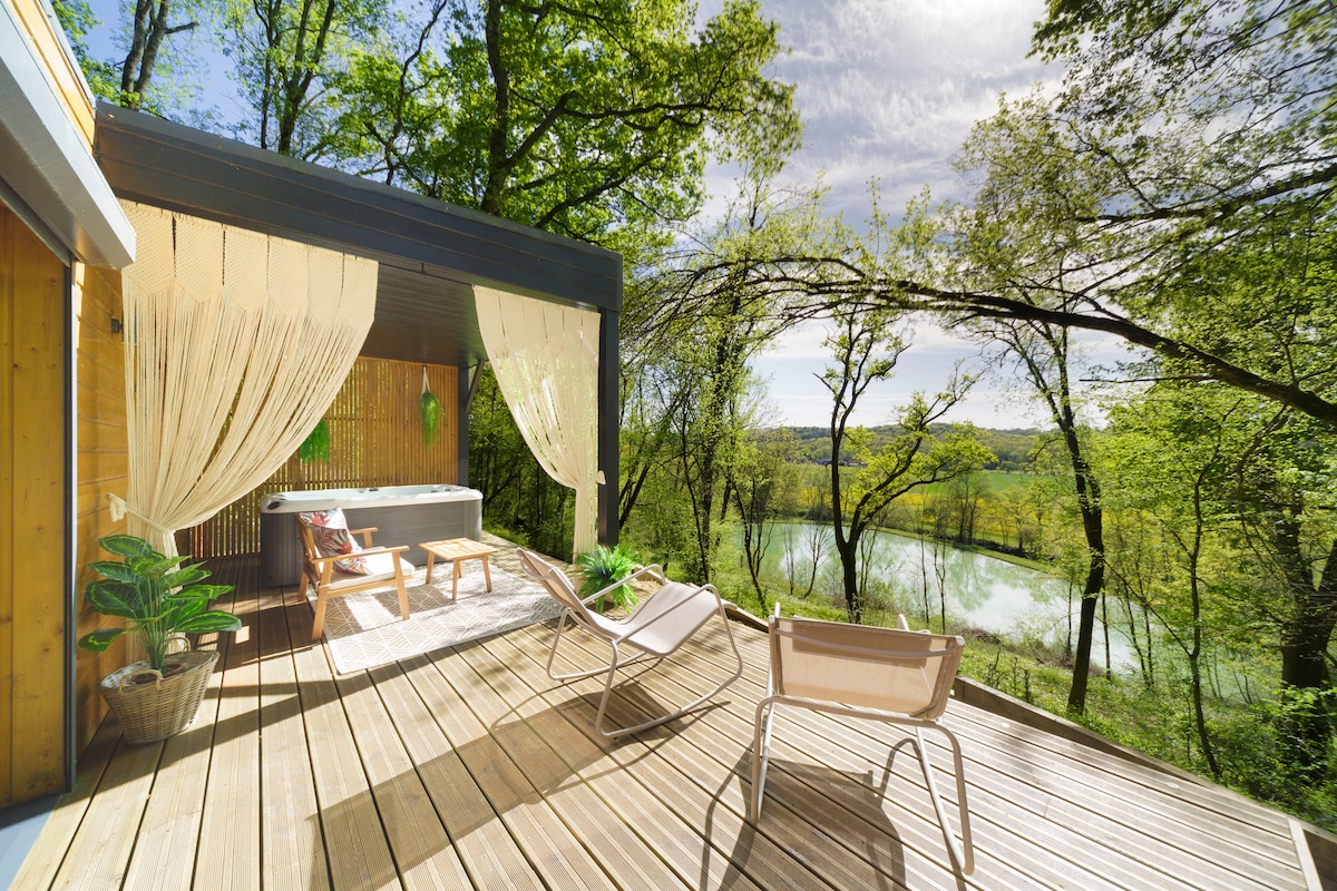 Bienvenue dans notre cabane sur pilotis, un véritable havre de paix niché au cœur de la nature, ici on ralentit on respire on se retrouve……. Dans une atmosphère chaleureuse a l esprit bohème qui imprègne chaque recoin avec ses matériaux naturels c est l endroit parfait pour se déconnecter du quotidien et profiter d un moment à deux. La terrasse vous invite a profiter de la vue majestueuse sur la forêt que ce soit pour un petit déjeuner ou une soirée dans le jacuzzi
