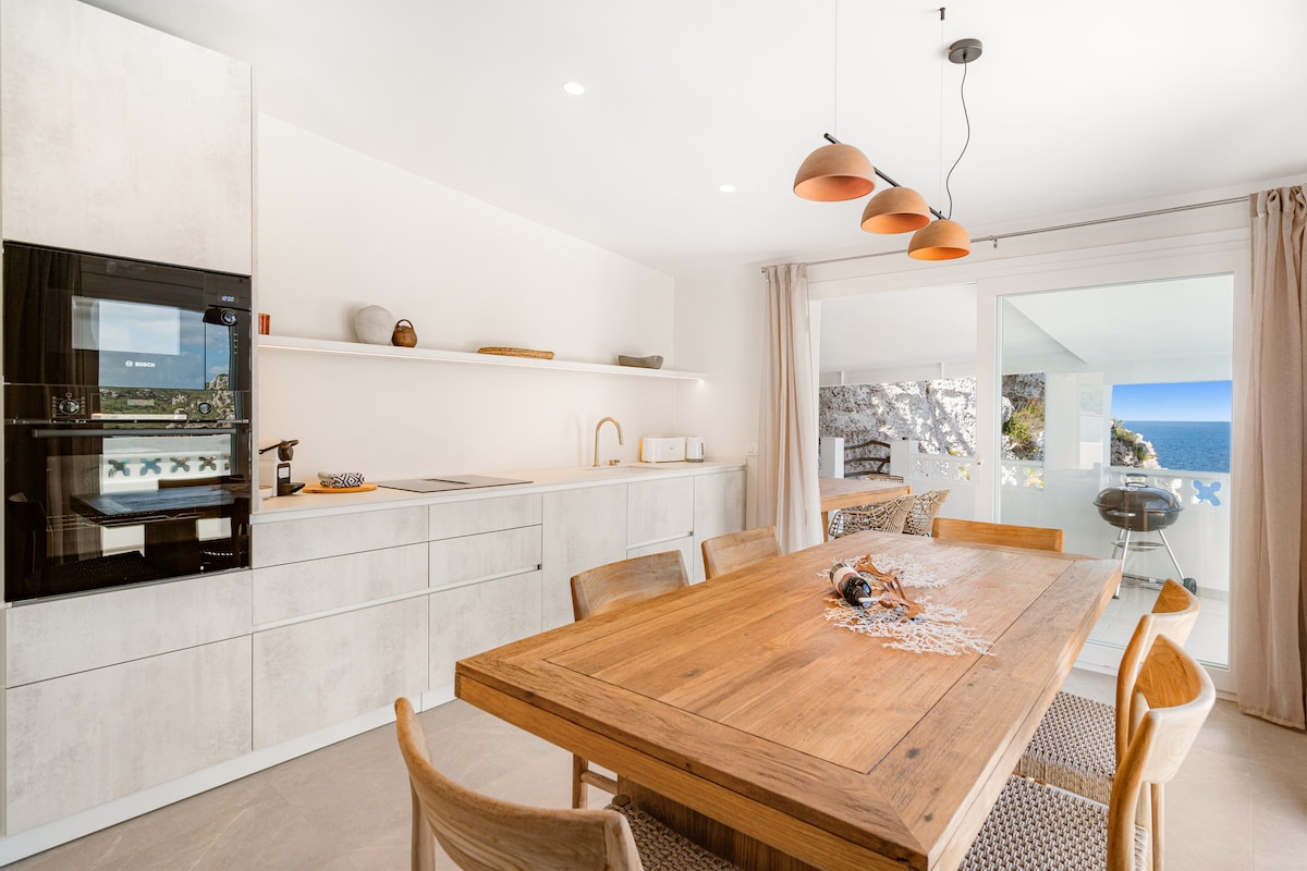 Architecturally designed apartment with unbeatable views on the cliff of Calan Porter, South Coast, Menorca. A truly unique property, designed by one of the most celebrated architects of Menorca. The property with high quality finishes, is a perfect and versatile space, the living room, kitchen and terrace communicate perfectly with each other to maximize the views that the property has, the contrast between the turquoise waters and the orange sunsets are breath-taking.
