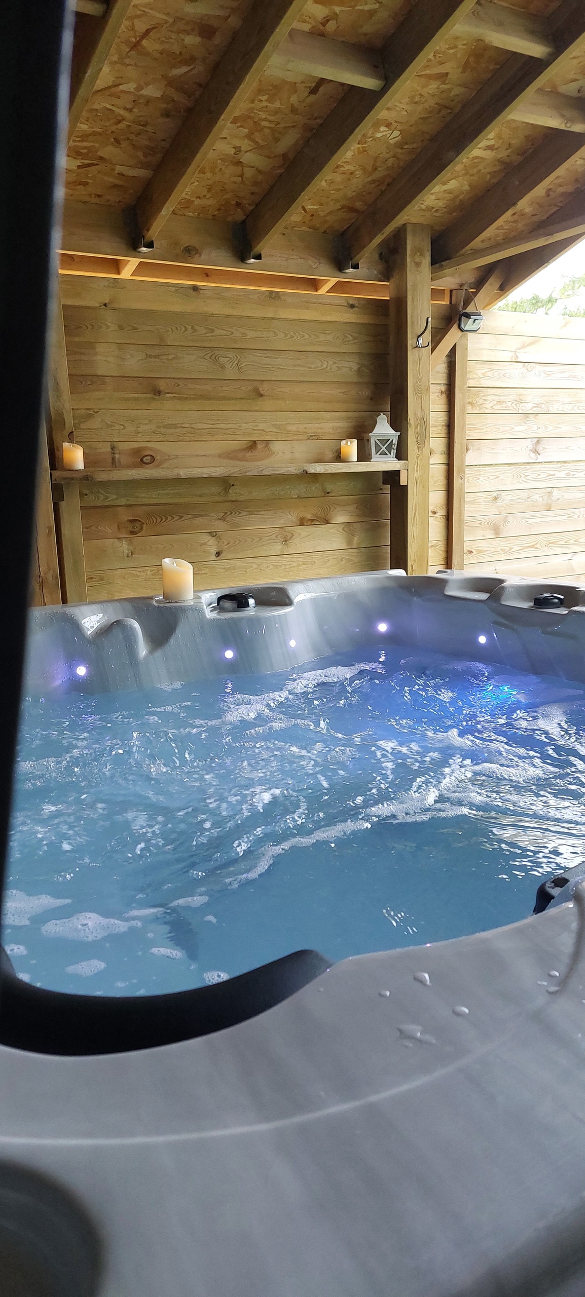 A newly renovated one bedroom house with private jacuzzi/ hot tub and beautiful views across the pool, barbecue pit and overflow jacuzzi. The house is situated on the site of an old 15th Century chateau and stud farm in more than 40 acres of beautiful countryside and lovely walks. Stunning en-suite bathroom and luxury kitchen. King sized bed with orthopedic mattress and Egyptian linens. All towels, including pool towels provided Sofa bed to provide for 2 additional guests.