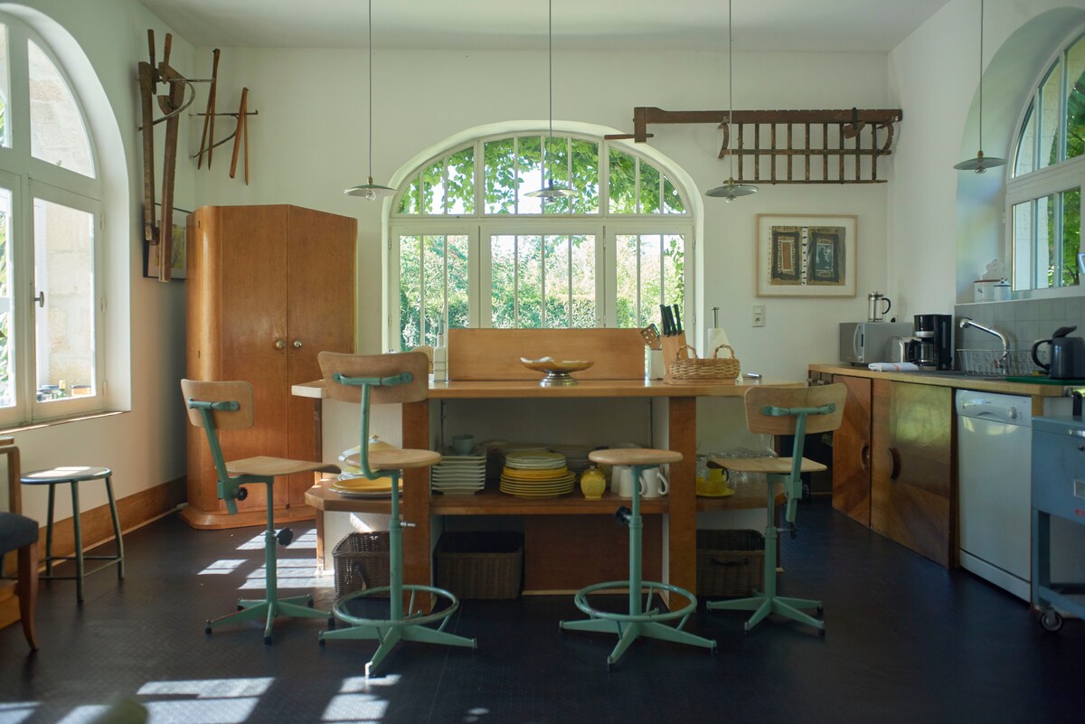 The outbuildings of our Louis Philip style château on 5 ha of land were recently modified into a 100 m2 living space with a pool adjacent to the terrace facing south. Another 35 m2 terrace facing north. An additional 45 m2 playroom accessible from the terrace. Quiet surroundings near Lussac Les Chateaux. All amenities available including water softener, clothes washer and fully equipped kitchen. A 42 inch TV with set-top box for Apple TV with Netflix. Beautiful natural surroundings.