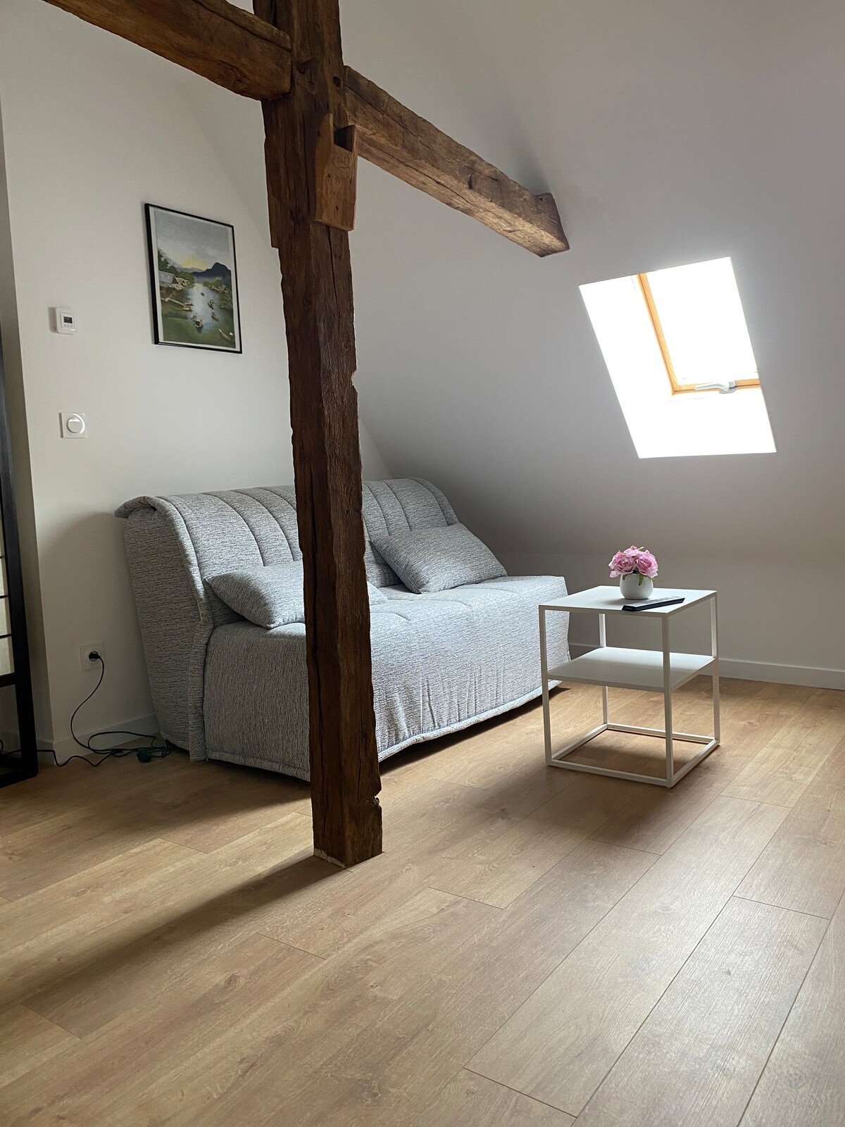 Détendez-vous dans ce logement qui combine le charme d'une architecture datant du Moyen-Age et le confort d'un équipement moderne, l'élégance du mobilier scandinave, tout en bénéficiant du calme et de la proximité des commerces du centre ville. Avant d'être converti en logement d'habitation, l'espace était une chocolaterie dont l'atelier était situé côté espace nuité actuel.