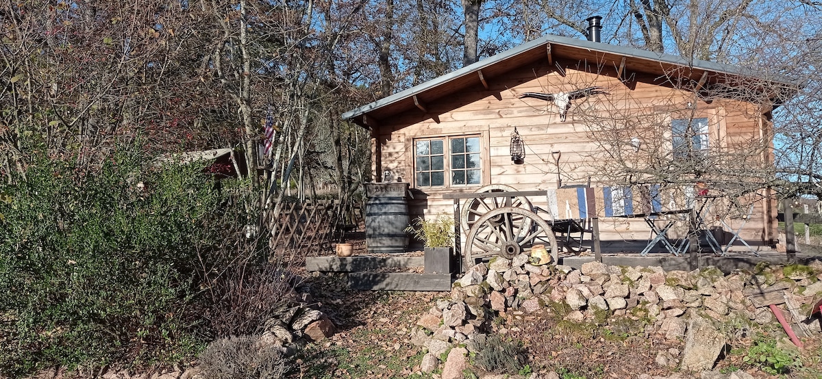 Complexe de deux cabanes dans le Morvan. Au cœur du Parc Naturel Régional du Morvan, au milieu d'un sous-bois, replongez vous dans la vie d'antan. Reconnectez vous à la Nature et aux choses simples avec ce complexe de deux cabanes inspirées Trappeur/Western. Une cabane salon, bureau, bibliothèque. Une deuxième fait office de chambre cuisine et salle de bains et WC (toilettes sèches). Panneau solaire et électricité. Pour l'eau, système de cuve d'eau potable, pompe à pied. Bain nordique chauffé.