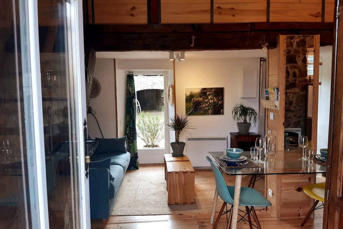 Au sein d'un petit hameau, grange rénovée et décorée dans un esprit rustique et artisanal vous séjournerez dans un espace de 60 m2 cuisine salon séjour et une grande chambre 20 m2 avec WC et salle d'eau attenante. Près de la nature vous pourrez faire de belles randos, ou vous détendre sur la terrasse avec un panorama superbe, un petit foot avec les enfants ou une pétanque avant l'apéro, c'est possible aussi. Grand terrain mais non clos, proximité d'animaux dans le voisinage.