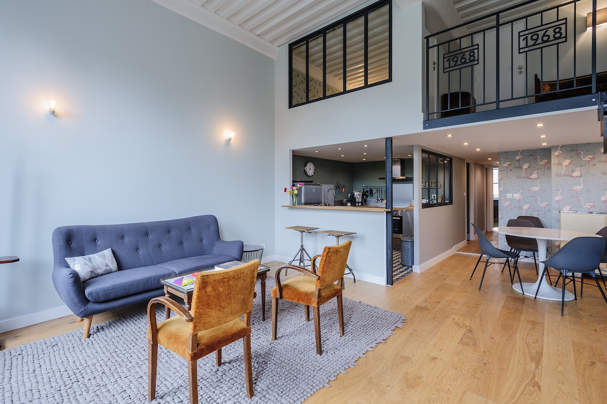 La loge est un appartement penthouse, rooftop aux prestations haut de gamme. Vous pourrez profiter de 60m2 pour 3 personnes maximum (le troisième couchage est un appoint, canapé lit 1 personne de chez Maison du Monde). La loge est la parfaite alliance du confort et de la tradition: charpente apparente, climatisation, fibre optique et bouquet de chaînes TV, cuisine entièrement équipée, décoration choisie, exposition d’œuvres d’art, terrasse, balcon, parking privé en supplément.