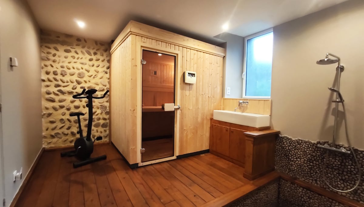 détente dans l'espace cocooning avec bain nordique ( spa) chauffé a 38°,5 sauna traditionnel finlandais exterieur au bois Massage bien- être, repas, ,.. piscine chauffée ( mars à octobre) et transat Le samedi, spa et sauna privatifs en semaine, spa, piscine, sauna et extérieur partagée jusqu à 18h rando à proximité, et à 10km du plus beau marché de France.. vue sur le prieuré et ses vignes Un lieu idéal pour se reposer ou se dépenser adult only piscine et extérieur partagé le13depic