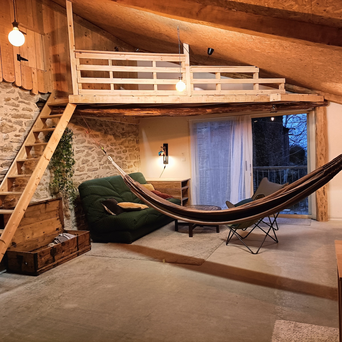 Prenez le temps de vous arrêter dans la fenière, ancienne grange à foin de notre ferme. Accueillante et spacieuse, cocooning, entre pierres et bois, vous pourrez vous y poser, lire, jouer, profiter du poêle à bois, du calme... La fenière est en Drôme des collines sur une route de crête, avec vue sur le massif montagneux du Vercors et les monts d'Ardèche. Les levers et couchers de soleil y sont magiques.