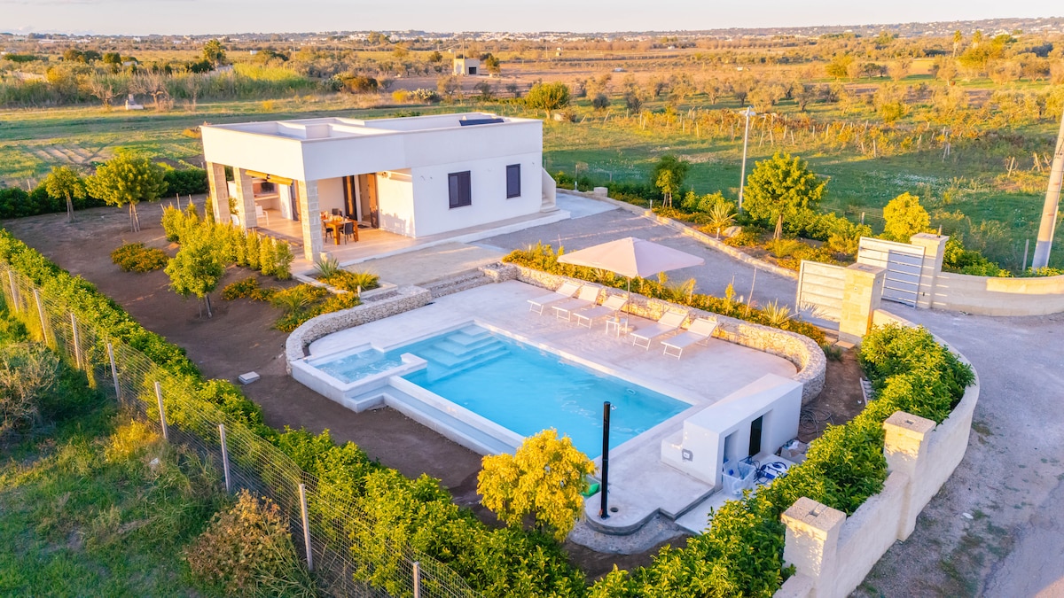 La villa, moderna e arredata con gusto, si compone di cucina abitabile con tavolo da pranzo, due bagni completi e due camere da letto matrimoniali. All’esterno il grande giardino privato è il cuore della villa. Qui troverete una splendida piscina con angolo idromassaggio, perfetta per rinfrescarvi durante le calde giornate estive, circondata da lettini prendisole e un patio ombreggiato. Un angolo barbecue attrezzato e una zona pranzo all’aperto permettono di organizzare cene sotto le stelle.