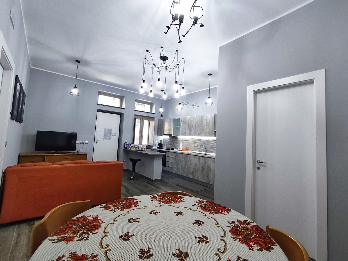 Appartamento recentemente ristrutturato, a metà strada sia dal mare che dalla montagna Composto da un ingresso privato, una camera matrimoniale con bagno privato, una camera singola, trasformabile a doppia con bagno privato, un soggiorno ed una cucina La camera matrimoniale e la singola presentano un armadio, prese adiacenti al letto, Smart TV 24”, aria condizionata e bagno completo di bidet, doccia, asciugacapelli e set di cortesia Su richiesta è possibile prenotare da 1 a 6 posti letto