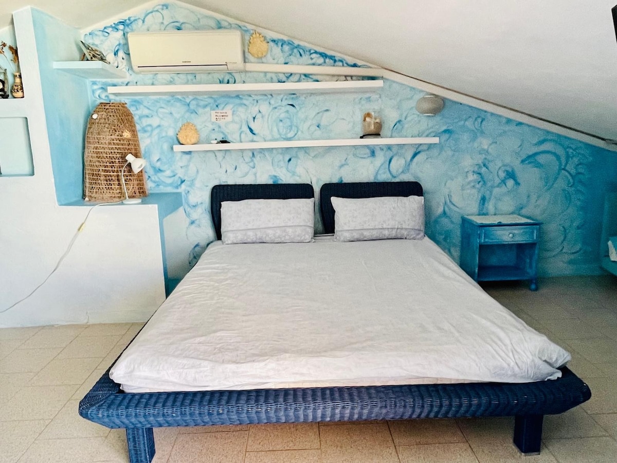 Monolocale vista mare a 5 passi dalla spiaggia e 10 minuti a piedi dal centro della città e dal porto. Zona molto tranquilla, offre un meraviglioso scenario naturalistico, permette di fare passeggiate e si trova a 10 minuti dalle più belle spiagge dell'isola. L'appartamento dispone di ampio cortile, con tavolo e ombrellone per esterno, ottimo per mangiare all'aperto vista mare.