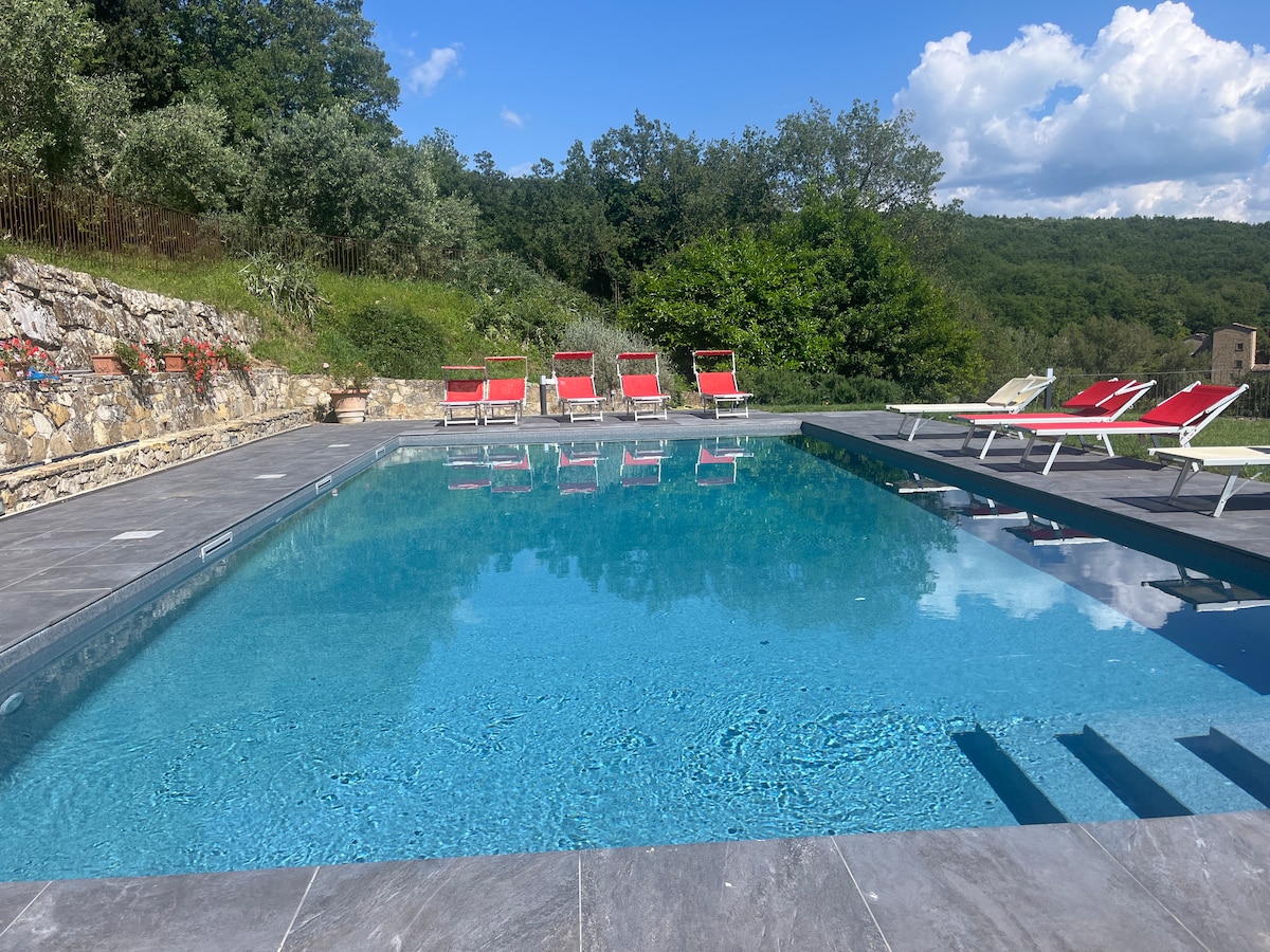 The House is located in a restored medieval village. There is an atmosphere of peace and tranquility, the gardens are full of flowers and aromatic plants and there is a beautiful panoramic view of the Arno Valley. There is a private terrace outside and two swimming pools to share with other appartraments. Perfect for relaxing and for reaching the main attractions like Florence, Siena, Arezzo, Chianti, Sangimignano. Here you will live a unique experience in the heart of Tuscany ...