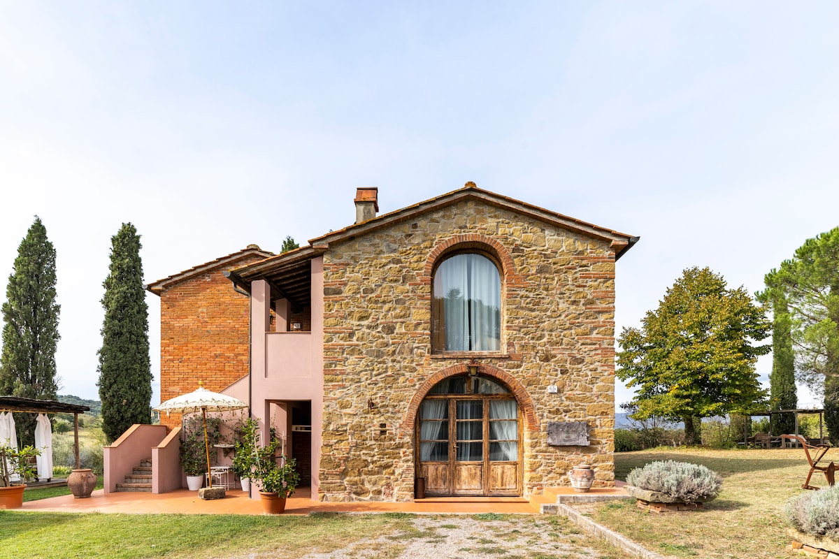 CARATTERISTICA CASA TOSCANA in pietra immersa nelle colline della provincia di Arezzo. Vicino a Siena, Firenze, Cortona, Perugia, Sansepolcro e alle Foreste Casentinesi. Ideale per trekking, turismo enogastronomico (a pochi km si trovano alcune tra le migliori cantine della Toscana), per appassionati di arte e cultura. A disposizione esclusivamente per gli ospiti un grande terrazzo panoramico, molto riservato. Vi accoglieremo con un presente di benvenuto.