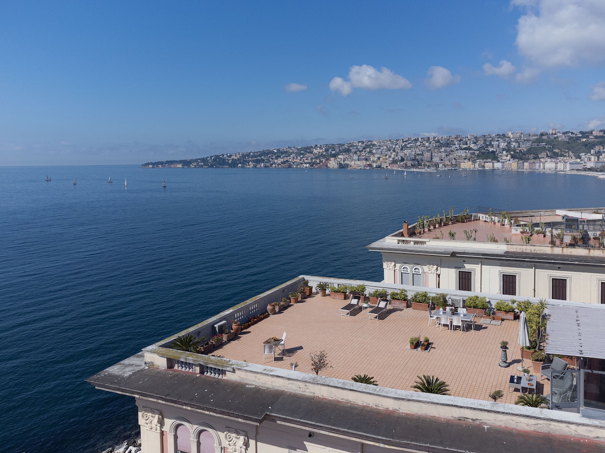Recentemente ristrutturato in stile contemporaneo l'appartamento gode di una vista spettacolare sul Golfo di Napoli, dal Vesuvio a Capri. Posizionato all'ultimo piano di una villa storica con ascensore. L’attico si compone di un grande spazio living con cucina a vista, due camere matrimoniali, due bagni ed un terrazzo privato. Inoltre, gli ospiti potranno usufruire gratuitamente di un posto auto privato all'interno del cortile ma non custodito.