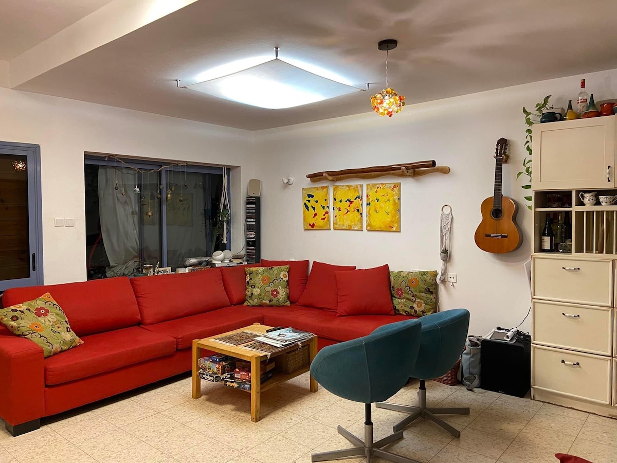 Our Lovely Home 3 bedroom house, perfect for families, in the most comfortable area of Zikhron Ya'akov. Enjoy our big family home: a spacious accessorized kitchen, a cosy living room with a TV, and four relaxing bedrooms. The balcony is facing our sweet and quiet neighborhood, with a view to Ramat Ha'Nadiv natural reserve and the beach. Only a few minutes walk from Zikhron Ya'akov's pedestrian mall, where you can find great pubs, museums, galleries and restaurants.