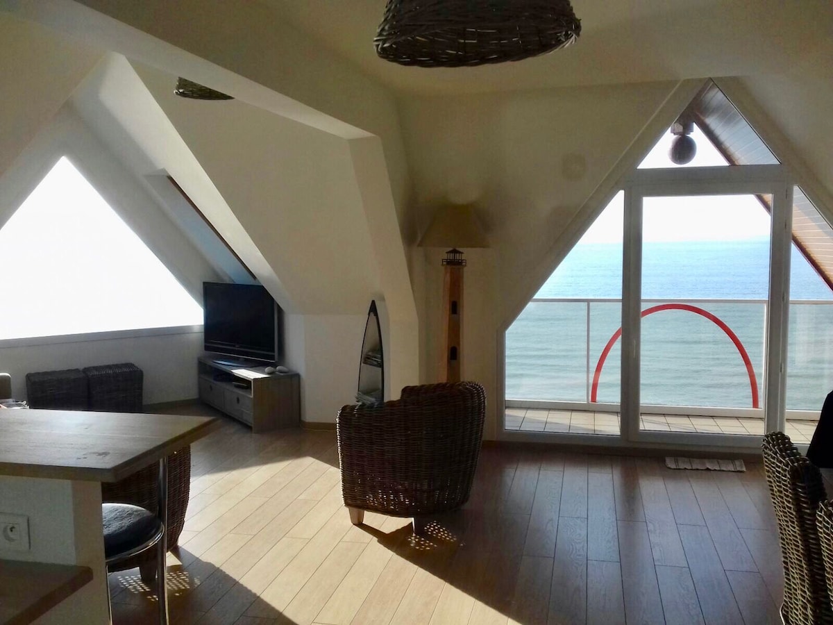 Déjeunez, lisez, contemplez la mer 🌊 depuis le séjour de cet appartement cosy avec balcon sur la Côte d'Opale avec arrivée autonome. ✅ Les points forts 🌅Vue mer 180° 🪟 Grande baie vitrée et balcon 6 m² 🚗Garage privatif (1 place) 📶Wifi +TV connecté ✨Appartement rénové de 54 m², cosy et lumineux, à la déco épurée. 🏖️Tout à pied : plage, commerces, restaurants, casino… et balade pour observer les phoques (selon les marées). 👶Bébé bienvenu : lit parapluie + chaise haute sur place