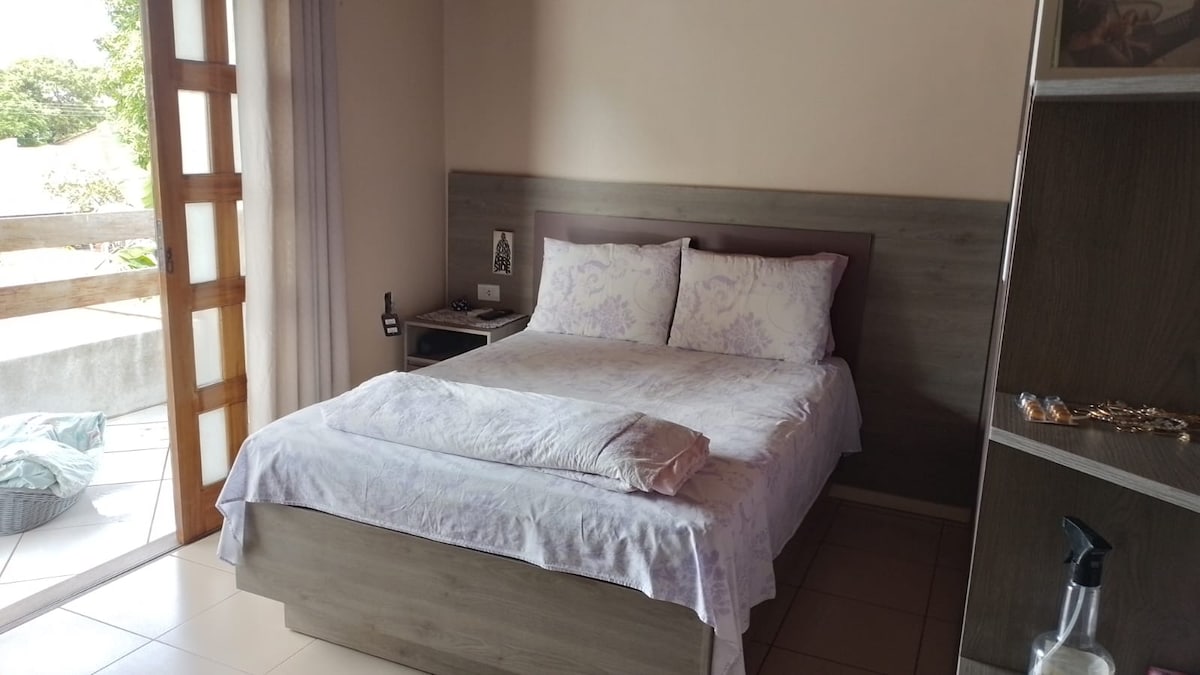 Temporada válida para as datas: 25, 26, 27, 28 e 29/06/2026. Bem-vindo à nossa aconchegante suíte com varanda, em frente ao Bumbódromo, perfeita para quem quer aproveitar a energia do Festival de Parintins! 1 suíte confortável, ideal para casais ou viajantes individuais com 1 banheiro privativo com chuveiro. Lençóis e toalhas fornecidos. Não oferecemos café da manhã.