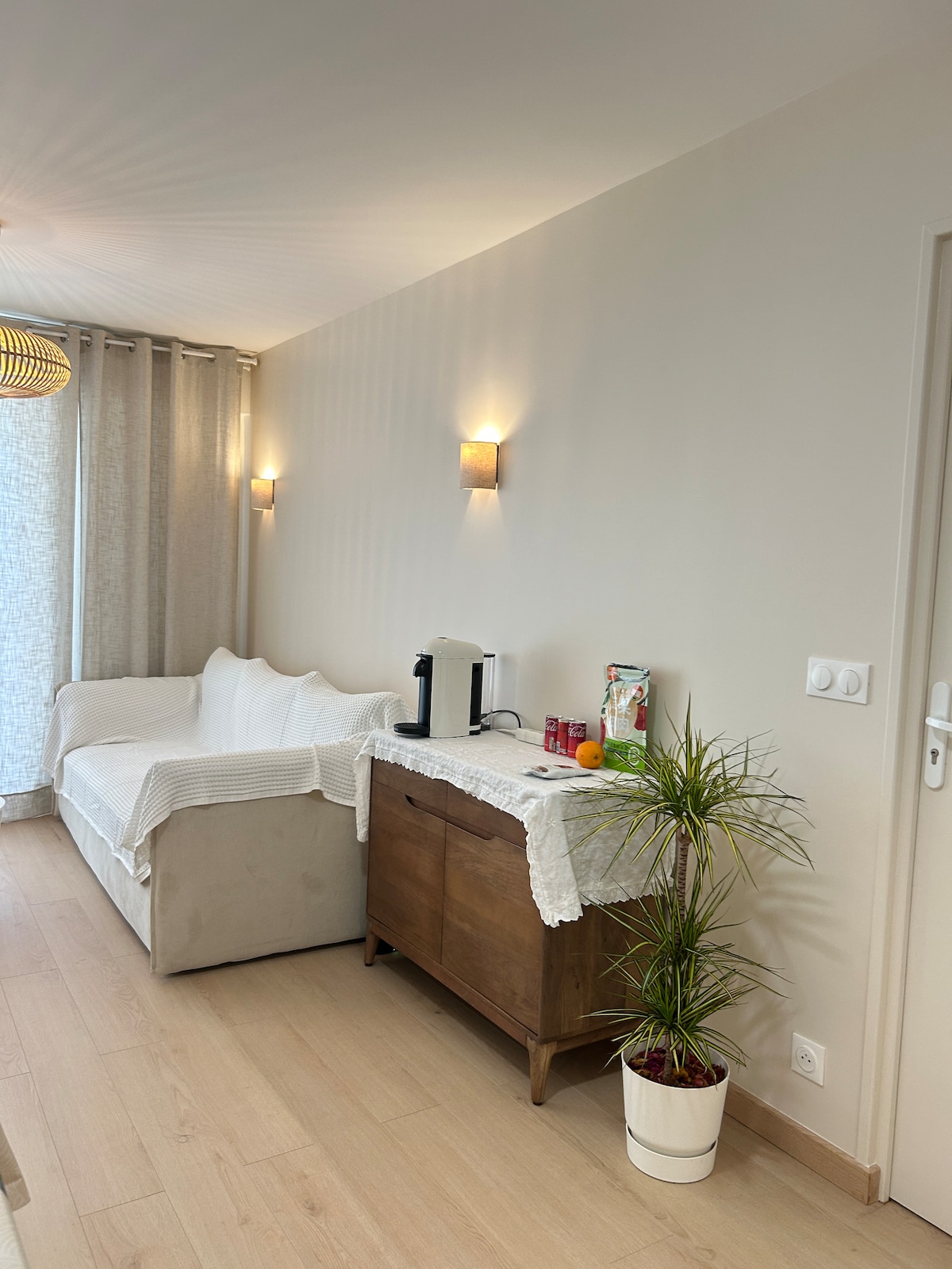 Air conditionned Cosy apartment near the metro station "mairie de montrouge" (line 4) . 20 minutes only from the center of Paris, 25 minutes from Orly airport by taxi Shower with massage jets, strong fan, large screen home cinema, high speed wifi, ergonomic office chair, all-in-one kitchen (espresso machine dolce gusto), confort mattress 45kg/m3, 17cm thick. Towels and sheets provided. Parties or evenings not allowed, pets not allowed. No smoking apartment.