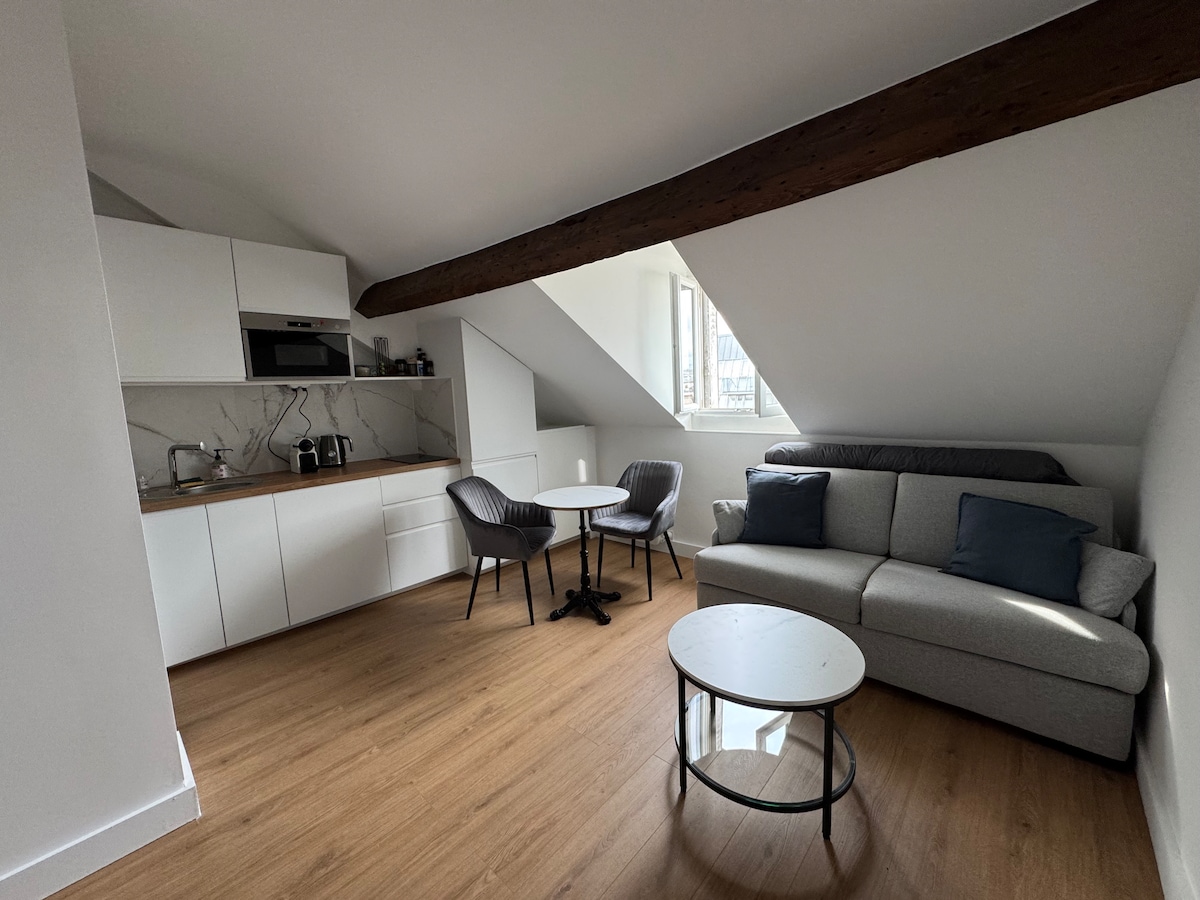 Overlooking our stunning inner courtyard and the charming neighboring church, your pied-à-terre offers open views, incredible natural light, and absolute tranquility—right in the heart of Paris. Each apartment includes a living room with a sofa bed, a dining area with a round table, a beautiful bedroom featuring a luxury hotel–quality bed, a fully equipped open kitchen with a dishwasher and washer-dryer, a shower room, and a separate toilet.