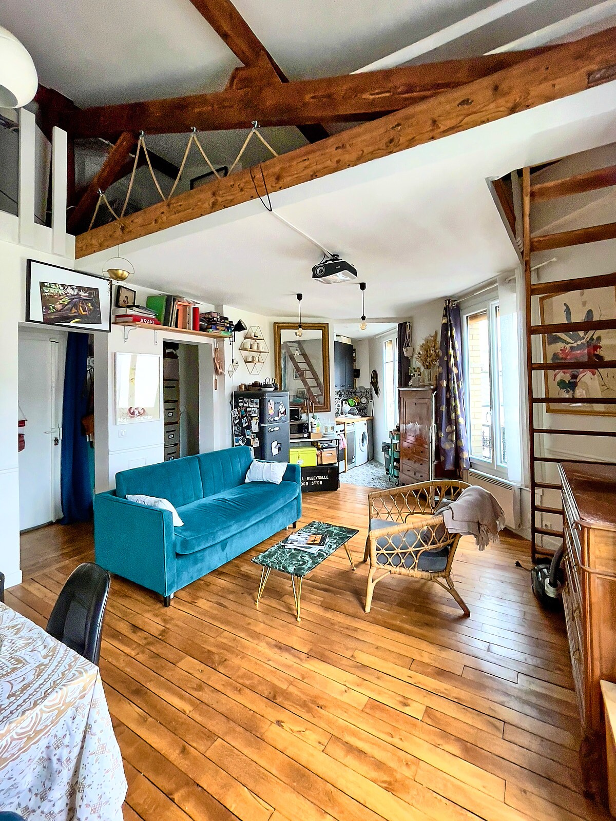 Welcome to my 50m2 flat where I live and work as a photographer (no ill smelling painting brushes!) at the 5th floor with lift in the 20th arrondissement, 50m from the amazing Belleville park. Fully equiped kitchen, Bathtub, Wifi. Let the ladder lead you to accessing the cosy, under-the-roof mezzanine with a very comfy double bed.