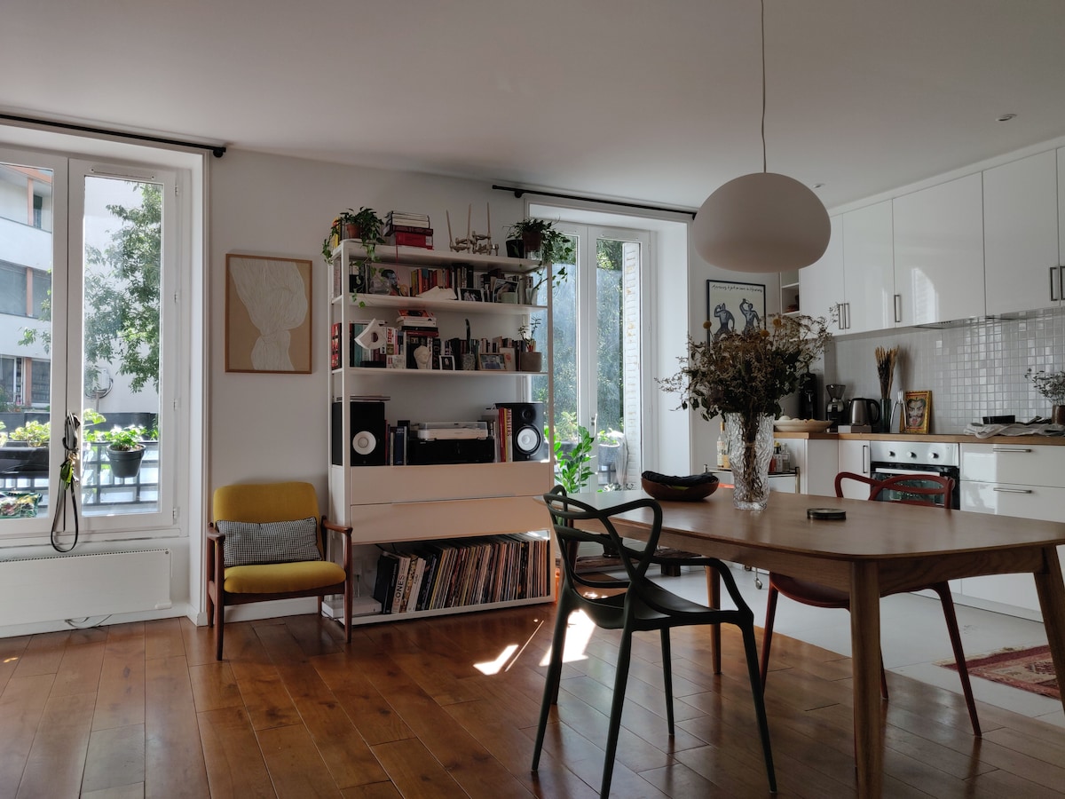 Tranquil and intimate appartement in one of Paris’ liveliest neighbourhoods. The space is an inspiration and „home“ to world reknown writers, painters and film makers - as well as for travellers who want to be in the heart of the city of love. With lots of light and silence, there’s a green balcony to eat, drink or read outside. The building is from the 1800th, so the five floors are to be walkded upstairs (by human power:) The « award » is being high up, far from noise and close to the sun:)