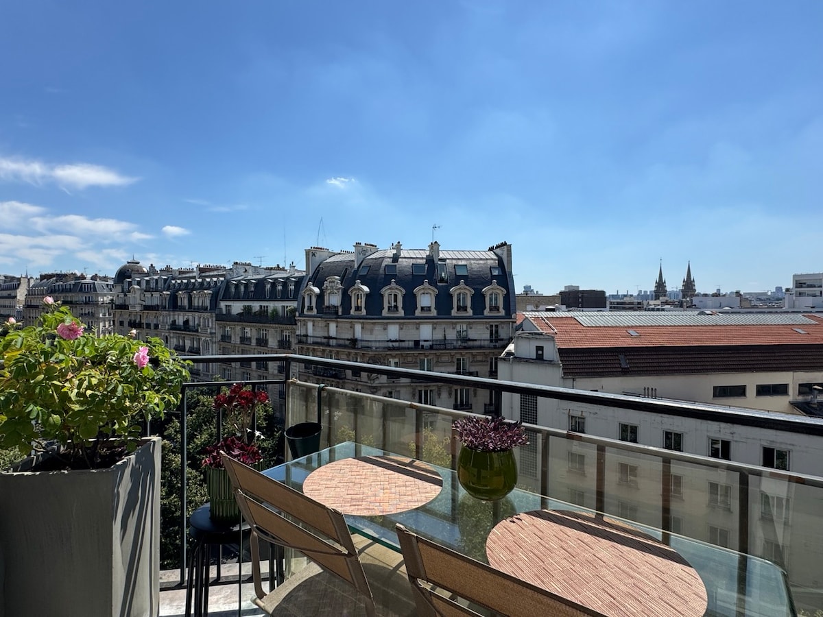 Exceptional Flat on the 5th and top floor with elevator, and steps away from Madeleine and Concorde! The renovation includes a gourmet kitchen with marble countertop and dishwasher - 2 bedrooms with their ensuite bathroom and toilet - laundry machine- AC unit in each bedroom. Bright living room that opens onto a spacious balcony with views of the iconic rooftops of the Ciy! Enjoy walking to trendy restaurants, bars and fancy Parisian department stores! Metro lines and buses minutes’ walk away!