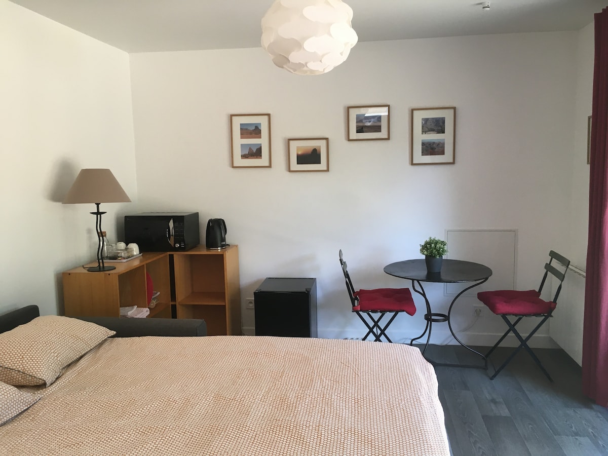 Studio indépendant avec salle de bain . Coin petit déjeuner tout équipé. Situation idéale : - à 7,90 km des portes de Paris, - à 900 m d'une entrée du Marché international Rungis et de la Sogaris - à 350m de la zone ICADE / Silic, - à 15 min de l'aéroport d'Orly (tram T7 à 350m à pied), - à 10 min de l'espace Jean Monnet " 1km à pied " ou bus 396 à 350m . transport en commun : T7, TVM, BUS Métro Ligne 7 et 14V accessible par tramway Un Lit simple sera preparé pour les voyageurs seuls