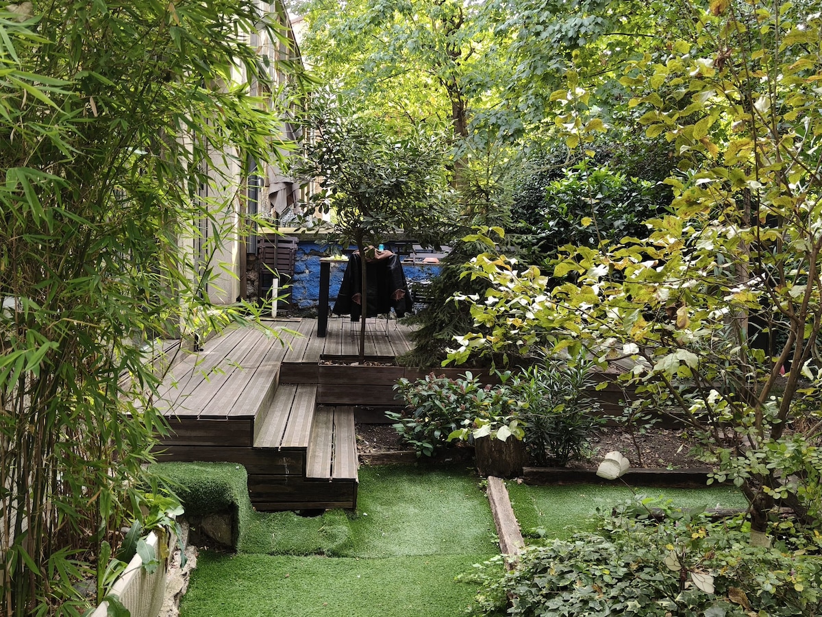 My lovely brick home is located next to Paris' Flea Market. The house stands in a private bucolic alley. The ground floor consists of the living room, the dining area, the kitchen and the garden-terrace. The second floor is made of two bedrooms, a bathroom and separate toilets. On the third floor, the attic has been turned into a large bedroom and wardrobe. You'll probably meet my friendly car, Moki !